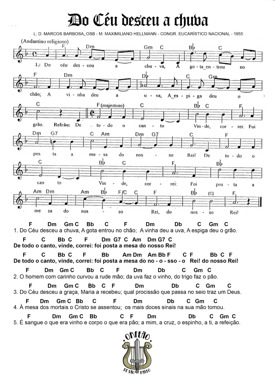 I. Do Céu desceu a chuva, A gota entrou no chão; A vinha deu a uva, A espiga deu o grão.